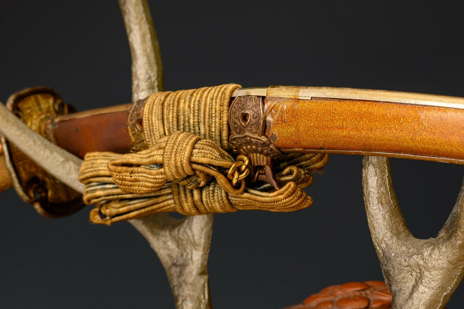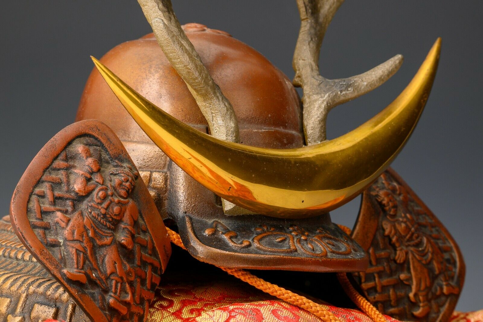 The attachments on the front represent Shintoism and Buddhism and add significant value to the Kabuto.