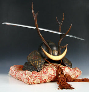 Life Size Japanese Samurai Helmet -shikanosuke kabuto- with a Replica Tsushima