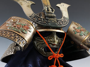 Old Vintage Samurai Helmet -colored Kusunoki Masashige Helmet- with a Mask