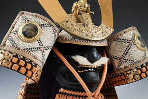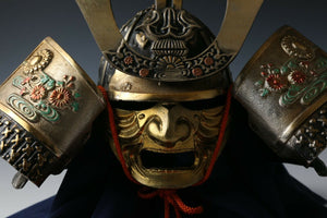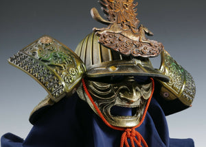 Old Vintage Samurai Helmet -colored Kusunoki Masashige Helmet- with a Mask