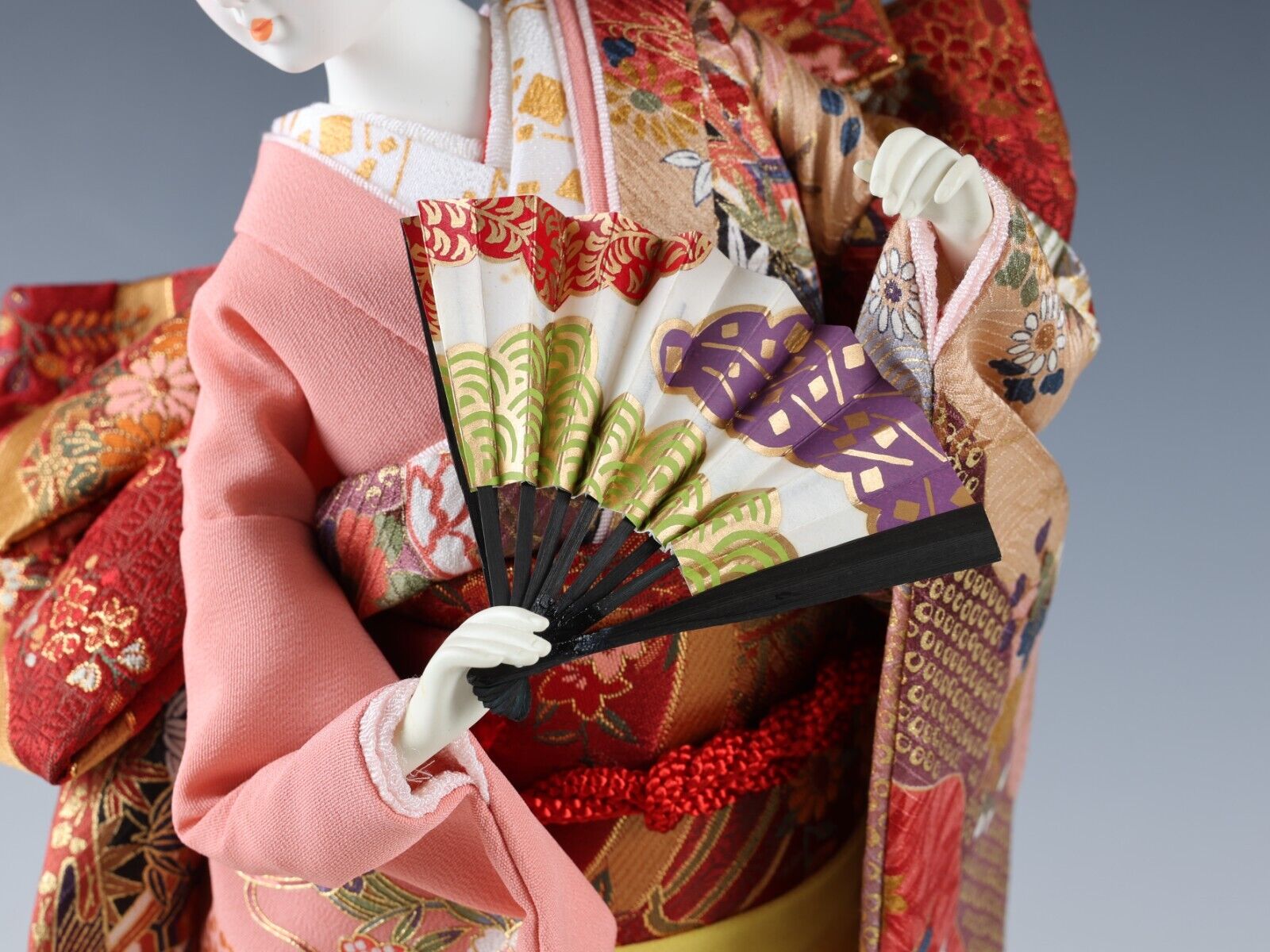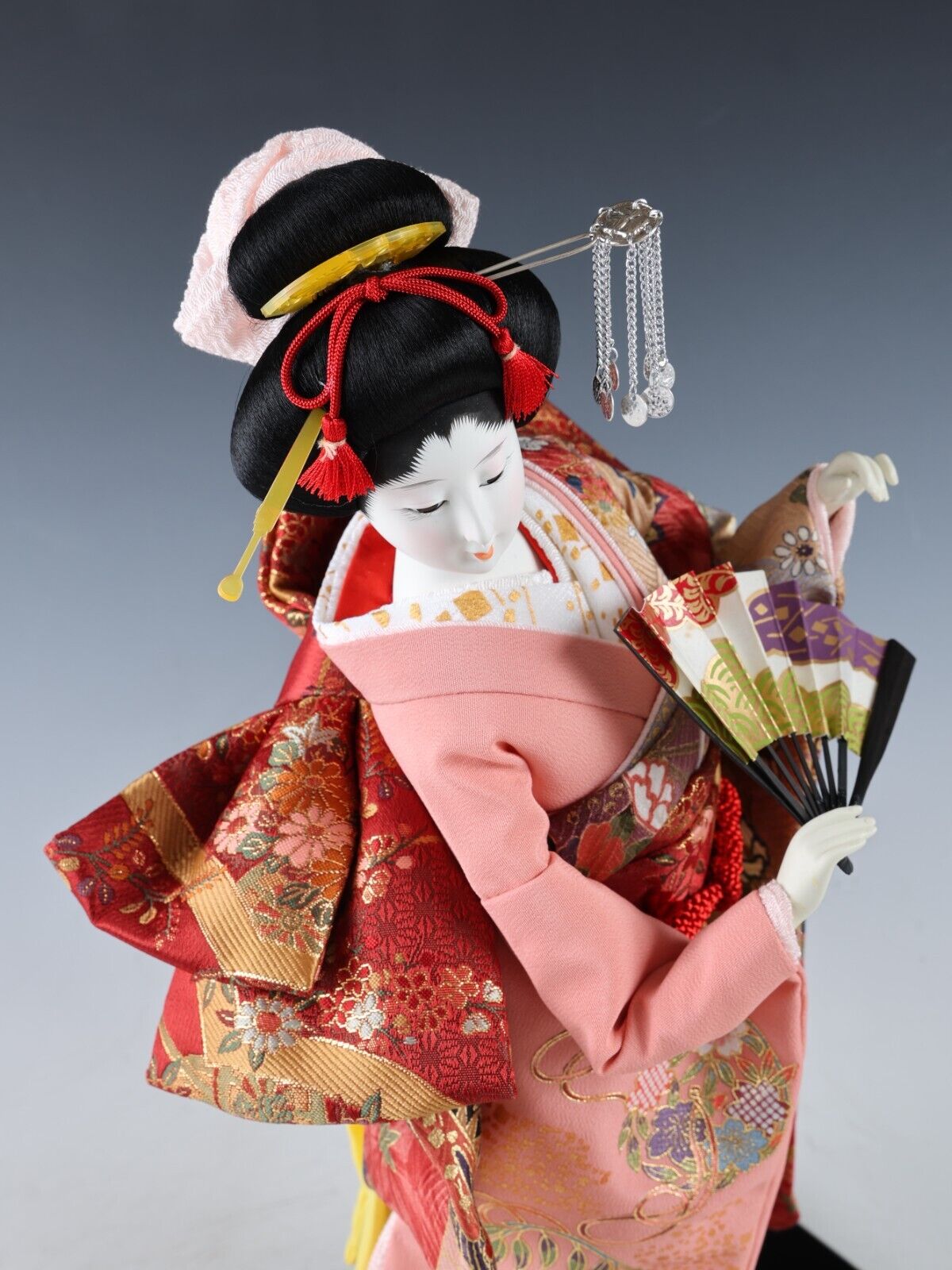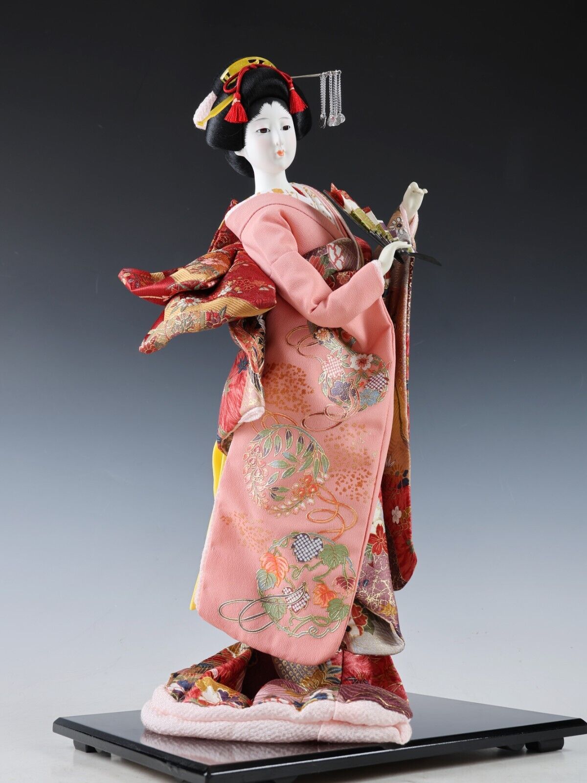 Beautiful Japanese Geisha Doll -Traditional Fan- autumn leaves kimono