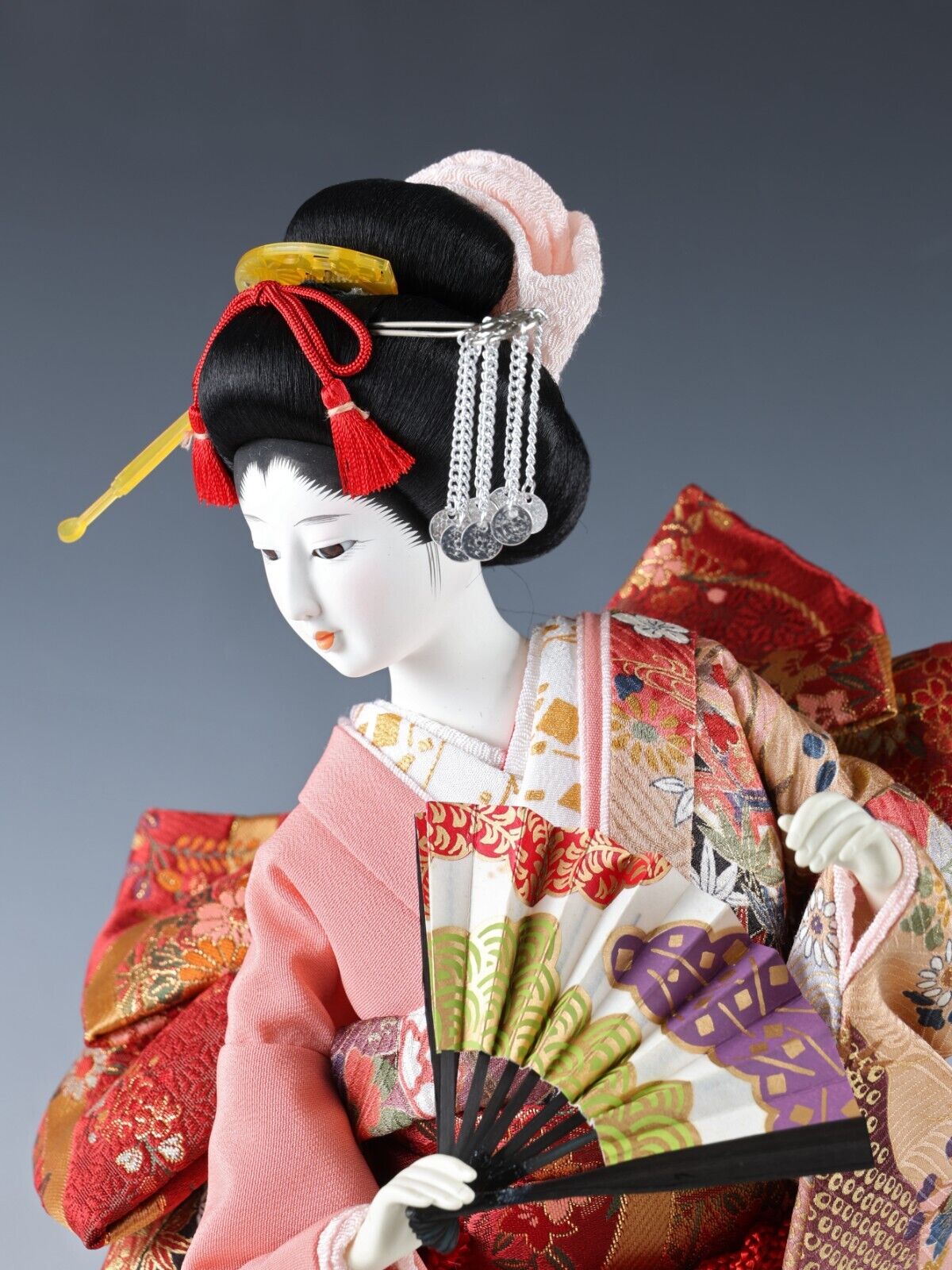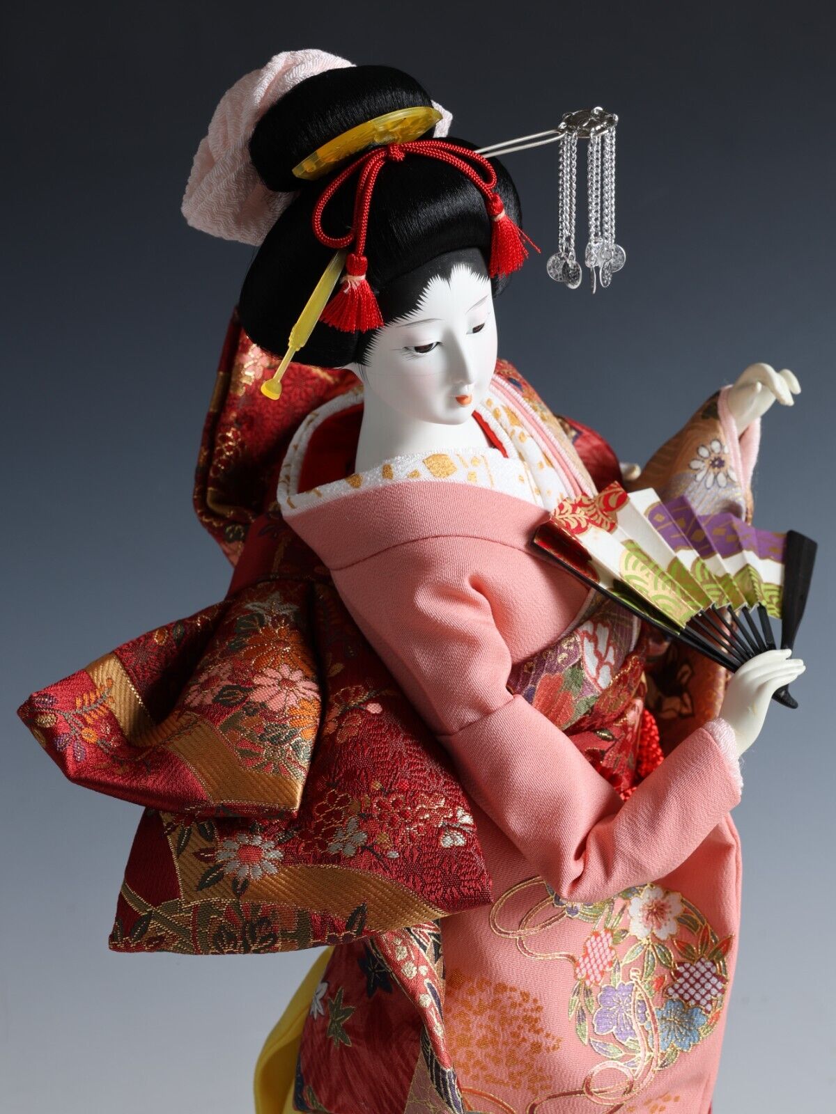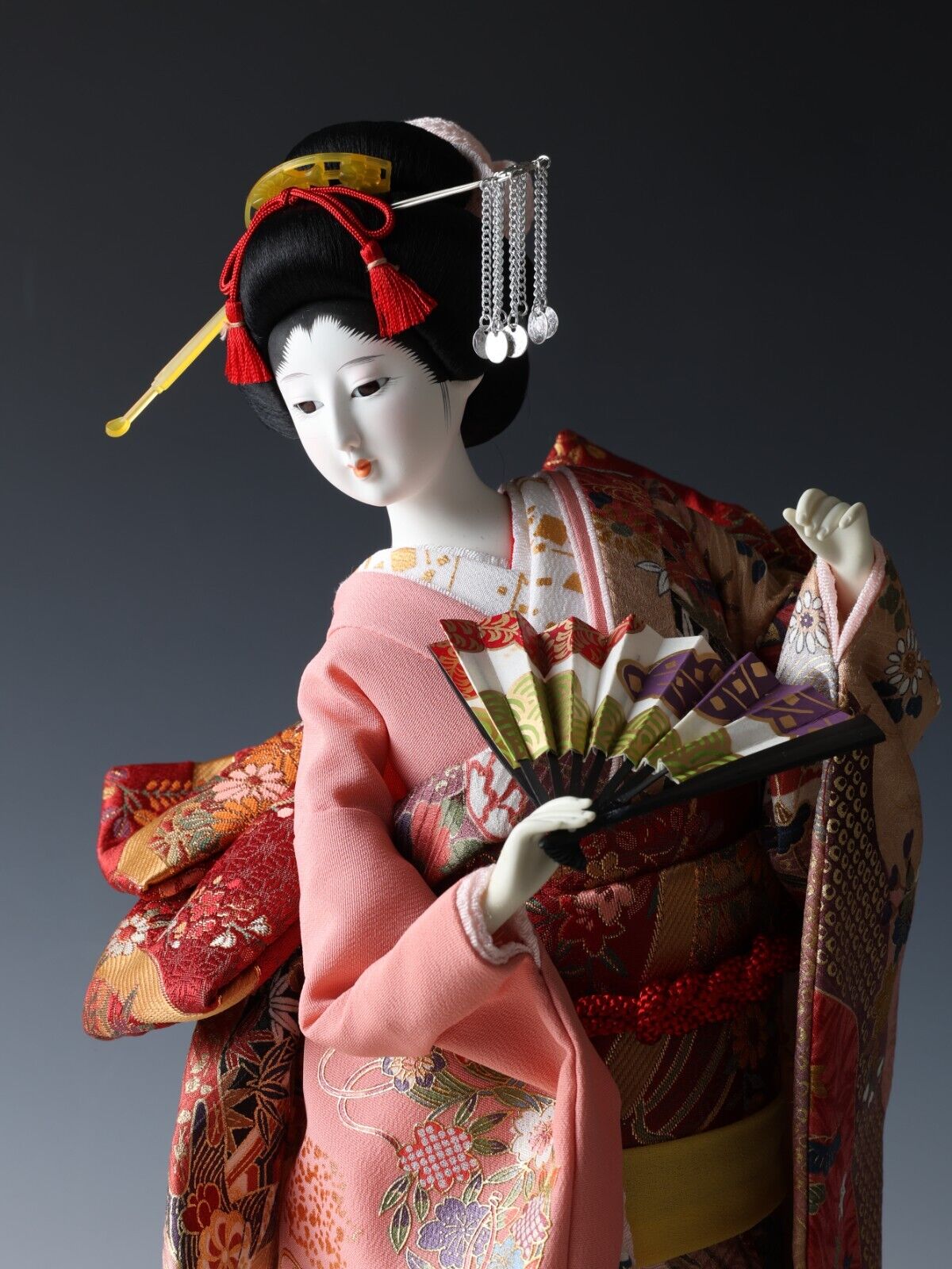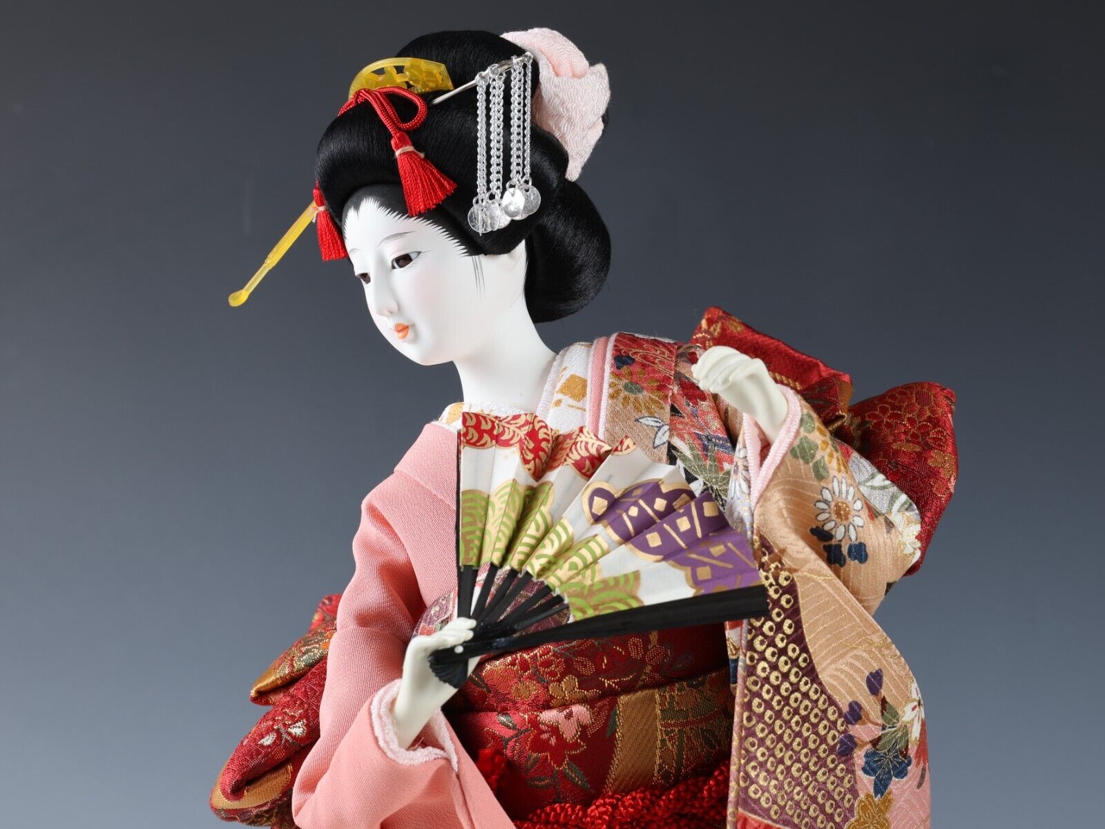 Beautiful Japanese Geisha Doll -Traditional Fan- autumn leaves kimono