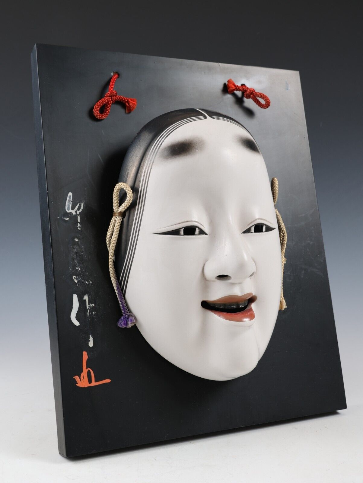 Japanese Vintage Porcelain NOH MASK Ko-omote 小面 -Mask and Frame-