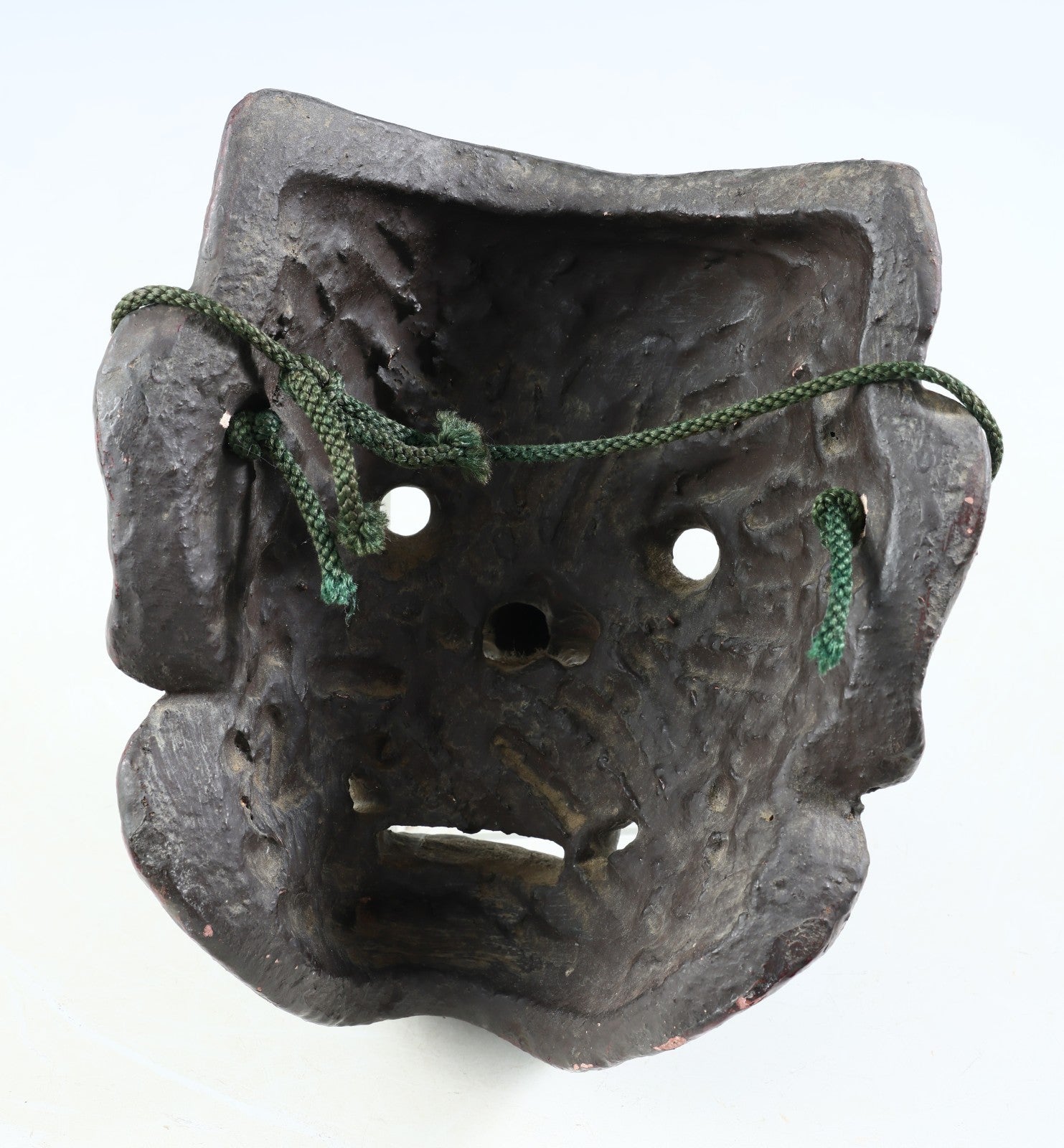 Please take a look and compare the different facial expressions from above and bottom of a mask on your hands.